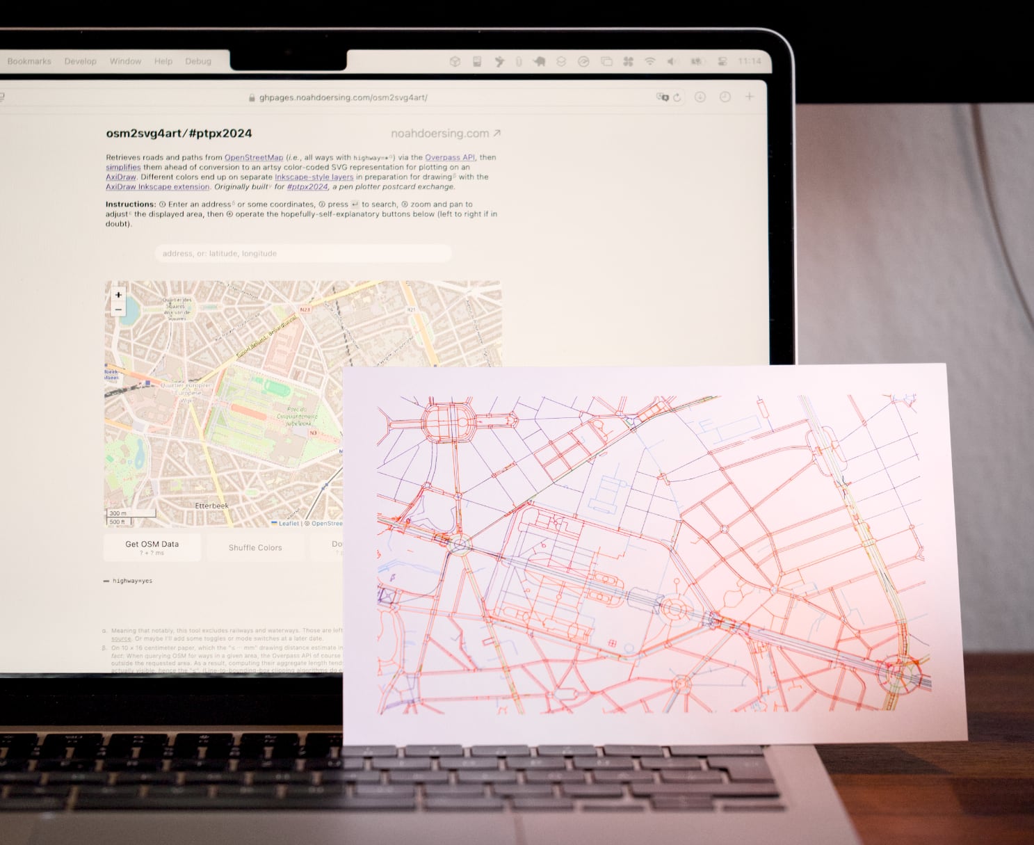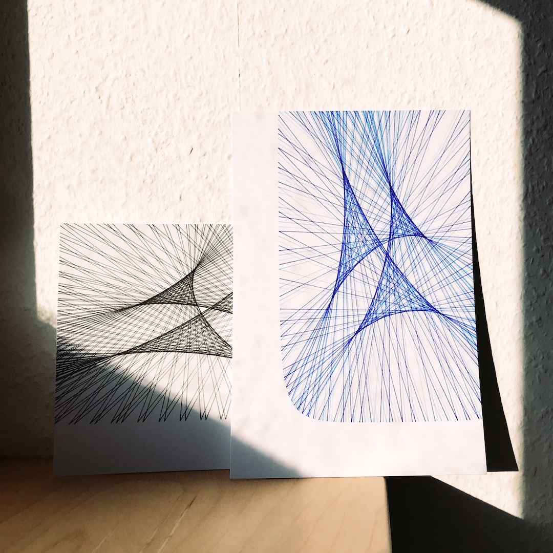 The resulting drawings are ready to be downloaded as images or shared through links like this one – alternatively, the line geometry can be exported in SVG and JSON format for, say, picturesquepenplottingpurposes (eachoftheselinks points to a plot).
